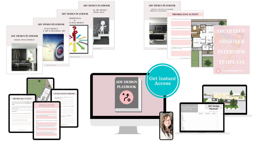 Inside the ADU Design Playbook, you'll get everything you need to create a strategic design wishlist that integrates Accessory Dwelling Unit-specific design strategies while honoring how your Accessory Dwelling Unit will be used. Whether it is for you, a rental, or setting up a multigenerational household. We got you covered.